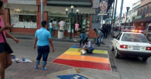 Los cruces peatonales con consentimiento de la autoridad municipal, son pintados con los colores de la bandera gay por parte de colectivos