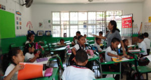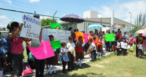 De manera pacífica, los padres de familia reclaman que sus hijos toman clases bajo altas temperaturas