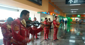 Fueron recibidos con flores y mariachis por familiares en el aeropuerto de Tampico