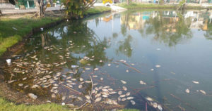 Decenas de tilapias murieron a causa de las altas temperaturas registradas en la pequeña laguna