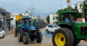 Primero se reunieron a la altura de la entrada al ejido Corpus Christi, después se desplazaron a bordo de 20 tractores sobre la carretera Tampico Mante hasta llegar al centro de Altamira.