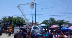 El servicio será reanudado para 300 familias que tenían retenido un camión de la CFE desde la mañana