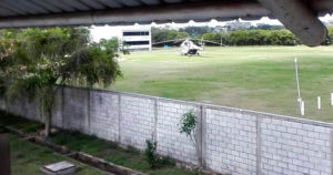 Fue al filo de las 9:10 que arribó en helicóptero a las instalaciones