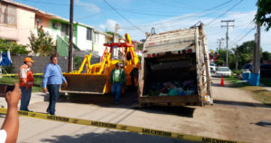 Un socavón se presentó cuando un camión recolector de basura pasaba por la calle Ampelis, poco después de las 10 de la mañana