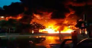 Elementos de la Marina, Gendarmería, Fuerza Tamaulipas resguardan el área del incendio