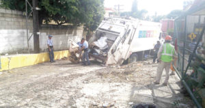 Parte de la barda de la terminal área se colapsara generando una avenida de agua con una fuerte corriente que arrasó todo a su paso.