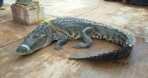 Un cocodrilo de 2.60 metros fue capturado por los habitantes de la colonia Candelario Garza de ciudad Madero