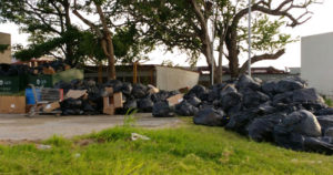La empresa que presta el servicio de recolección de basura les ha fallado por lo que han tenido que pedir apoyo al municipio para que se lleven los desechos acumulados en el área de estacionamiento
