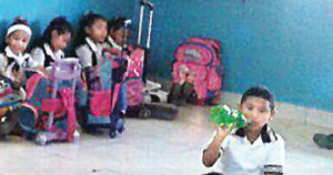 La escuela Leona Vicario en Monte Alto carece de mobiliario; padres de familia han tenido que llevarles sillas a los niños