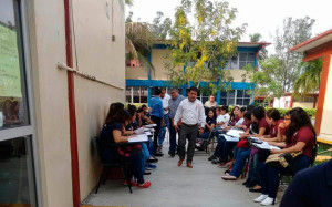 Un grupo de estudiantes del Cbtis 164 tuvo que tomar clases fuera del salón por espacio de más de una hora esta mañana