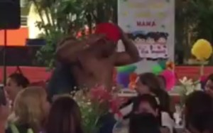 En las imágenes se atiende a un conocido personaje de la localidad mientras departe con las mujeres colocadas frente al escenario