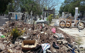 A cuatro días de celebrarse el Día de la Madre así luce el cementerio municipal de Tampico, con montones de basura en los pasillos