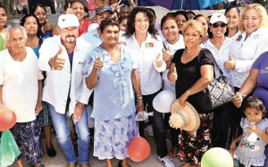 Acompañada por la aspirante a la Diputación local por el distrito 18, maestra Felícitas Martínez Almazán, la también abanderada de los partidos, Verde y Nueva Alianza, recorrió las calles de las colonias Adolfo López Mateos, León F. Gual y Ampliación López Mateos