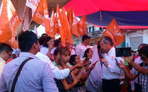 Durante un recorrido de campaña a través de la colonia Benito Juárez, en un mercado rodante dijo que son tiempos de austeridad