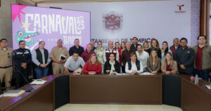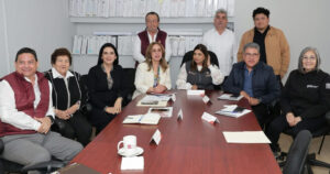 La sala de Cabildo fue sede para sostener la sesión de trabajo, en donde estuvo presente la presidenta municipal, Mónica Villarreal Anaya, acompañada de la directora de turismo, Karime Cámara Chaín