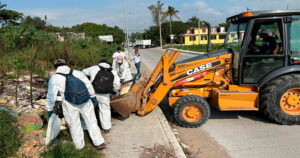 Una retroexcavadora, camiones de volteo y personal de la dependencia liberaron banquetas, calles y solares