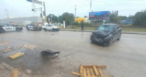 Uno de los autos fue proyectado contra un poste de alumbrado público, al cual derribó.
