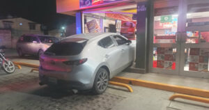 El personal que despacha en una gasolinera fue testigo de este choque contra objeto fijo que terminó con volcadura.