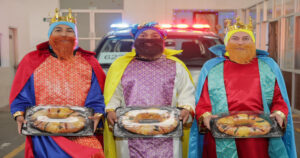 La corporación de Tránsito y Vialidad de Tampico, junto a los Reyes Magos, entregaron roscas a automovilistas que demostraron conocer las medidas de prevención vial