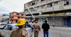 Las ráfagas de viento causaron que material pétreo de viejos edificios de la zona centro de Tampico, cayeran en la vía pública