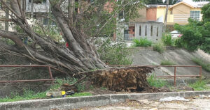 El árbol fue vencido por las violentas ráfagas de viento y por el paso del tiempo.