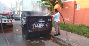 Del contenedor surgía fuego y humo pero en cuestión de minutos, los vulcanos sofocaron el incendio.