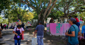 En el lugar, integrantes del Club Guías Mayores de la iglesia adventista del séptimo día acudían a las tumbas para preguntar a quienes la visitaba si querían que entonaran un canto en memoria de quienes fallecieron