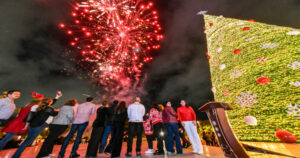 Enciende Mónica Villarreal monumental pino y villa navideños en el recinto ferial con gran espectáculo musical