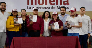 La presidenta nacional del partido, Luisa María Alcalde Luján estuvo ayer en Tampico, acompañada por Andrés Manuel López Beltrán, para anunciar la campaña masiva en toda la entidad