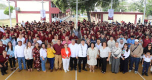 Al encabezar el acto de develación de placa conmemorativa por el 40 aniversario de la Secundaria Técnica No. 53 en Altamira