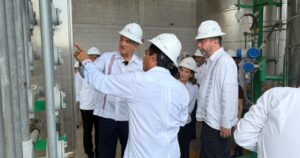 Autoridades estatales y federales recorrieron una planta de pirólisis en Altamira que transforma residuos plásticos en combustibles alternativos, como parte de proyectos de energía sustentable y cuidado ambiental.