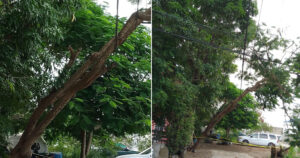 El árbol se encuentra en peligro de caída después de que sus ramas se han enredado con el cableado, generando preocupación entre los vecinos de la zona.