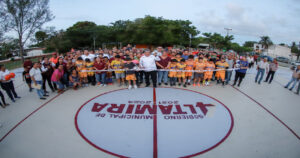La jornada de trabajo dio comienzo con la inauguración de los trabajos de rehabilitación en el Parque Deportivo y Recreativo del ejido La Pedrera
