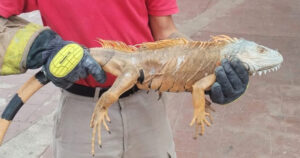 Personal de vigilancia del parque solicitó el apoyo de los bomberos municipales para atrapar a la iguana, la tarde del sábado.