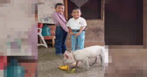 Su historia se ha vuelto viral en las redes sociales, ya que además de su globo, dulces y diploma, al pequeño Martín se le ve feliz con su puerquito
