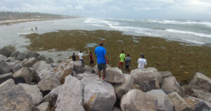 El animal llegó a playa Miramar luego de que la corriente lo arrastrara desde el río Pánuco