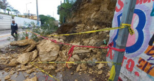 Piedras y tierra cayeron sobre la avenida Portes Gil, sin afectar a los vehículos que circulaban por la vialidad