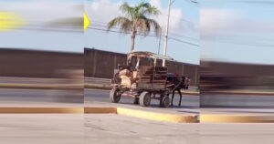 El animal hacía grandes esfuerzos para jalar el pesado carretón