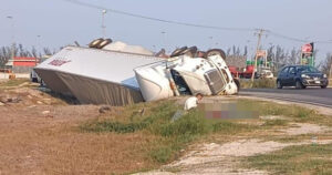 El operador de un tráiler International color blanco al tomar la curva perdió el control del volante