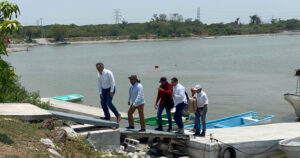Tras su visita al municipio de Tampico, el gobernador del estado supervisó los trabajos de dragado que se realizan en la Laguna del Chairel y recorrió el río Tamesí
