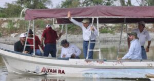Tras su visita al municipio de Tampico, supervisó los trabajos de dragado que se realizan en la Laguna del Chairel y recorrió el Río Tamesí.