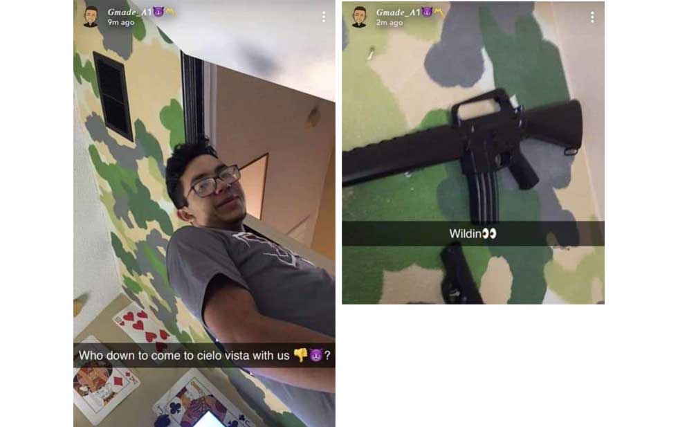 En Snapchat se subió una imagen que muestra armas y tiene el mensaje ‘¿Quien quiere venir a Cielo Vista con Nosotros?’