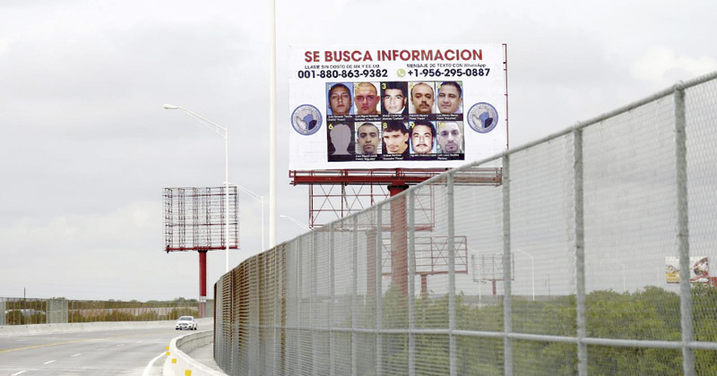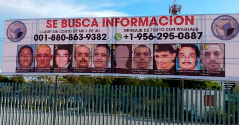 Colocan autoridades del vecino país espectaculares con fotos y referencia de los delincuentes que son buscados por autoridades de Texas y Tamaulipas