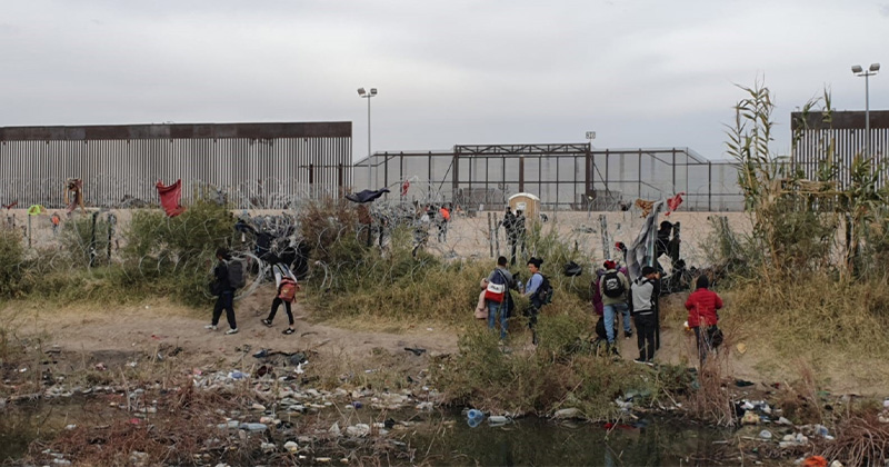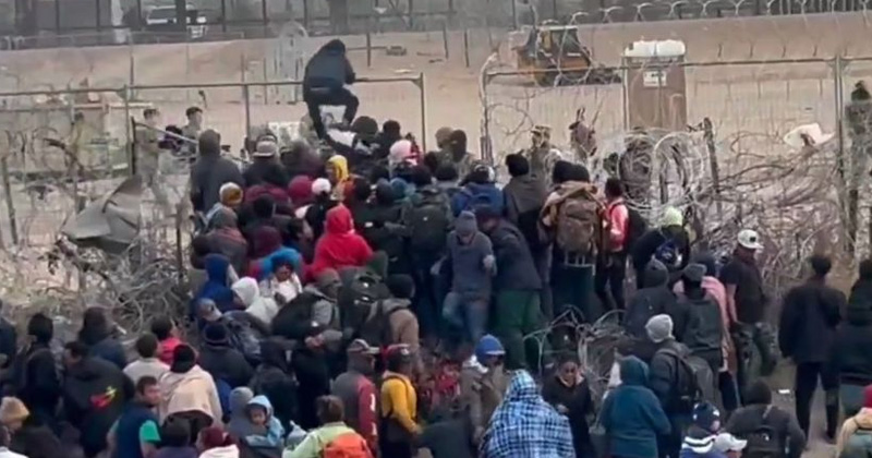 Migrantes intentaron derribar cerca de púas en frontera de Juárez con Texas