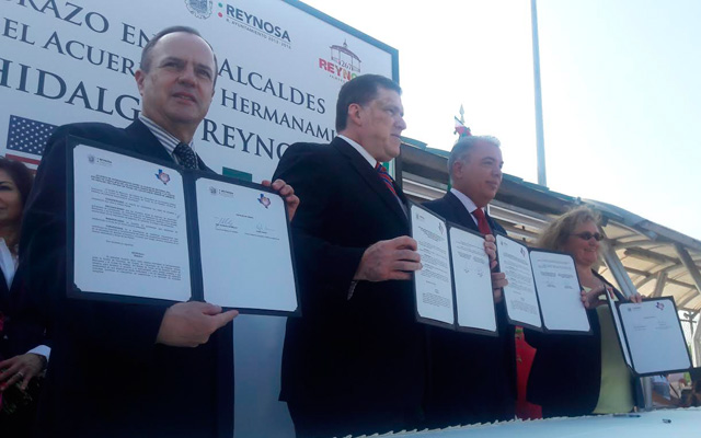 Firman acuerdo de hermandad alcaldes de Reynosa y de Hidalgo, Texas