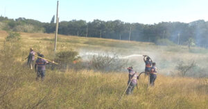 Personal de Protección Civil intervino para evitar que el fuego se extendiera más por el predio.