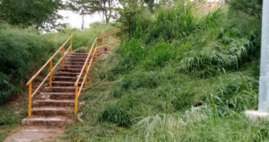 Las escaleras para subir al viaducto están totalmente enmontadas y no hay alumbrado