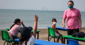 El Colegio implementó esta medida en una playa. Alumnos estuvieron seguros de cualquier tipo de contagio de Covid-19. Colocaron las sillas y escritorios en la arena de Camino Real, en Boca del Río