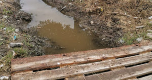 Para cruzarlo solamente se cuenta con un endeble puente de madera que amenaza con colapsar. Menores podrían caer y exponer sus vidas