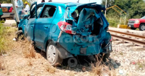 Fémina trata de ganarle del paso y se da la espectacular colisión.